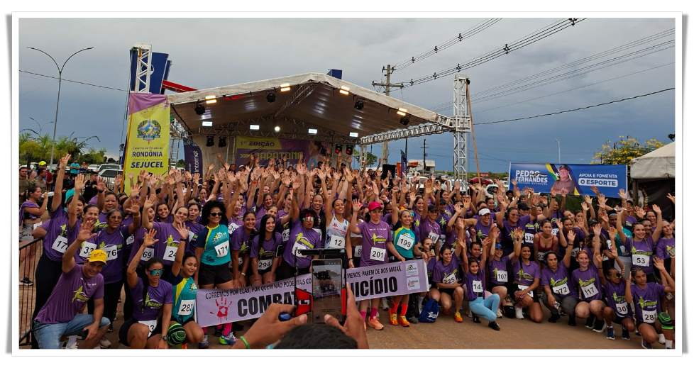 Esporte e Consciência: Atletas de Buritis levam mensagem de combate ao feminicídio em corrida no município de Cujubim